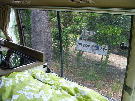 Sun Shields can also be made for the rear window or any other window in the Coaster.