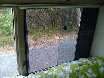 A Flexible Magnetic insect Screen for the Rear Opening Door is made for internal installation. The insect screen is available for the full depth of the door opening or can be made to seal off at the level of the bed base.