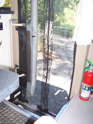 The Flexible Magnetic Insect Screen for the Plug Door is installed inside the vehicle and can be left in place without interfering with the manual operation of the door.